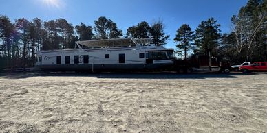 We offer professional hauling of your houseboat out of the lake for repairs or inspection. The total cost is based on the boat's dimensions: Length × Width + $1800, which covers hauling out of the lake, up to 24 hours on land, and launching the boat back into the water.